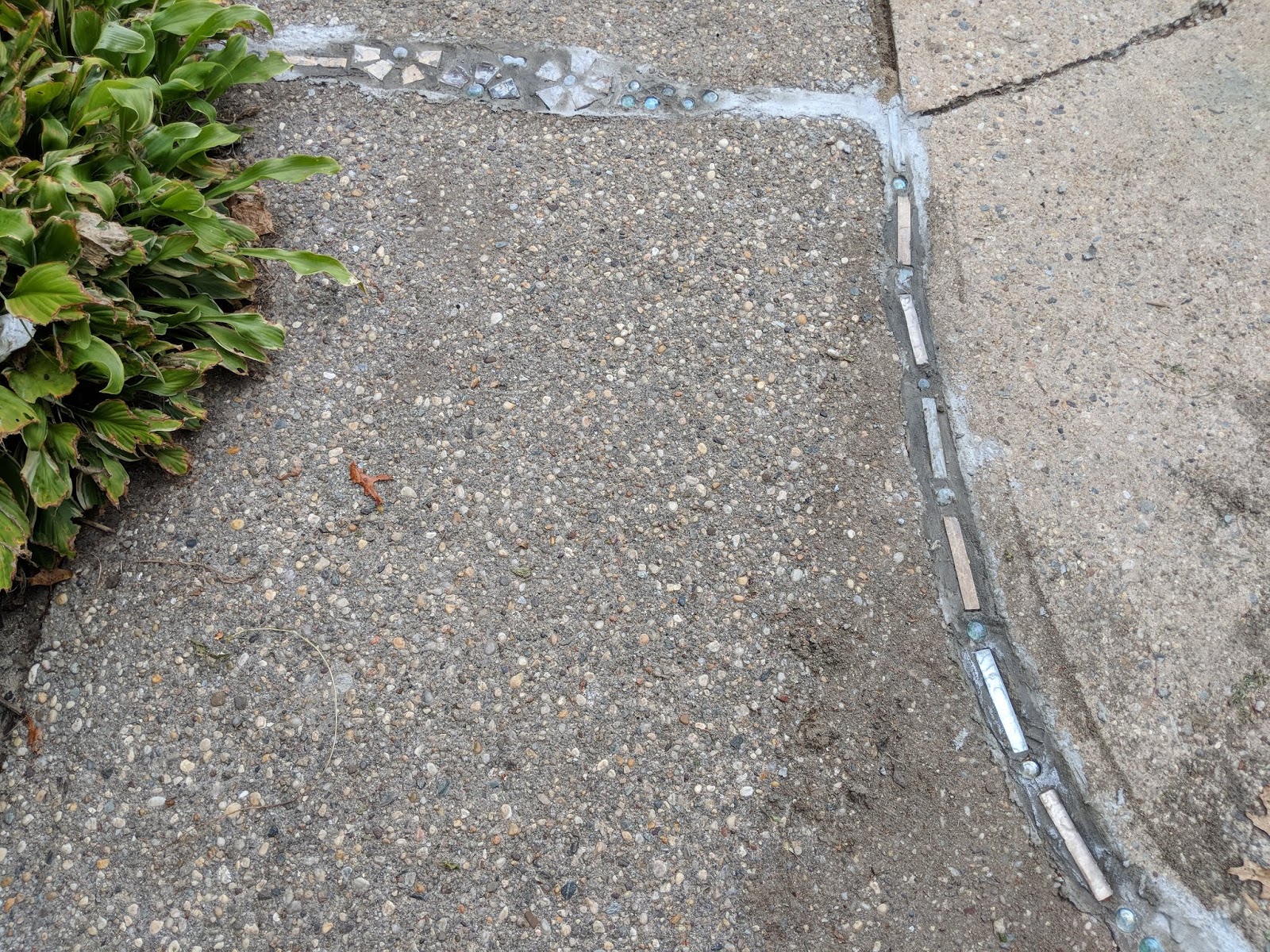 Going through my Pintrest feed one morning with my cup of Golden Monkey tea (which i can't get anymore since Teavana closed) I see a post about broken china mosaic in sidewalk cracks. I have sidewalk cracks!
